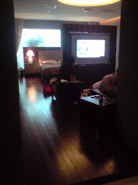 房裡空間還滿大的,電視42吋.外面還有 會客廳 50幾吋的電視。
