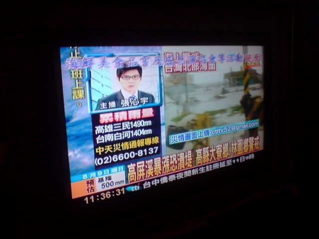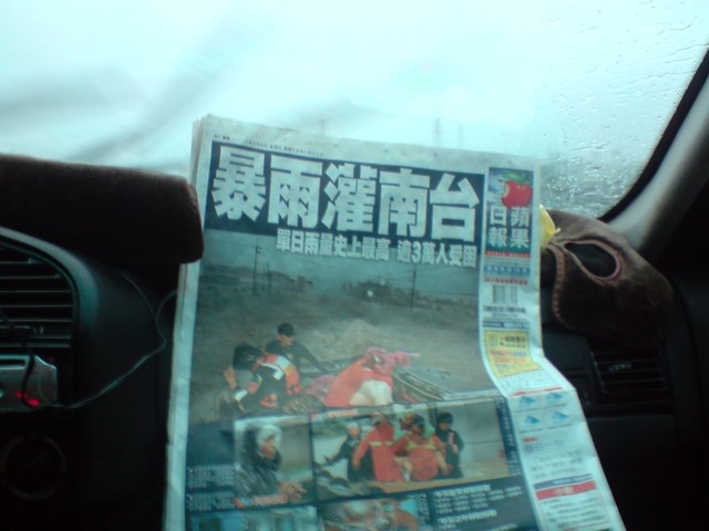 一路上水淹很大,而且今天馬總統下鄉堪災也來民雄,好多SNG車和記者採訪!!