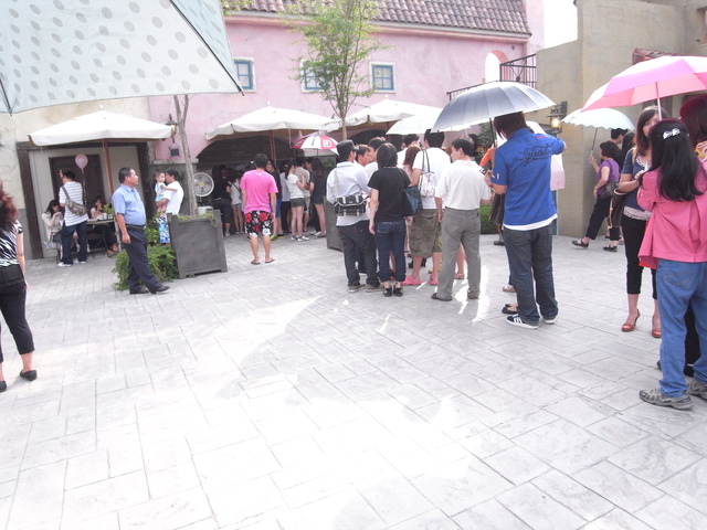 才知原來慶典區今天有人結婚,好像規定每個女生都要穿著禮服,