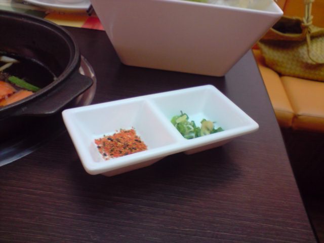 日本辣味噌鍋和獨特沾醬甜甜辣辣的 ( 忘記名稱了)