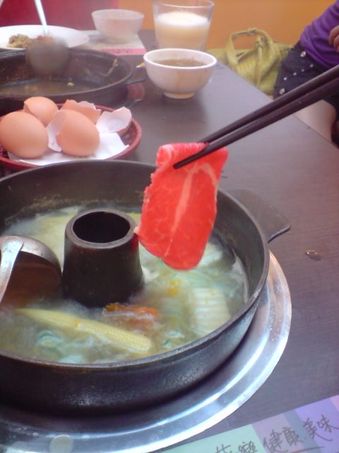 (湯底比較鹹 但涮肉吃可不沾醬 便可吃到肉的鮮甜。)